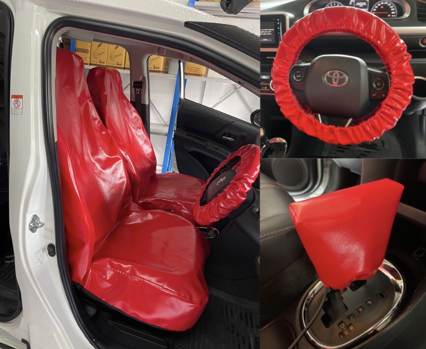 รับผลิตผ้าคลุมกันเปื้อนรถยนต์ ผ้าคลุมแก้มรถ ผ้าคลุมกระจังหน้ารถ ผ้าคลุมเบาะหน้า ผ้าคลุมหัวเกียร์ ผ้าคลุมพวงมาลัย ผ้าคลุมเบาะหลัง ผ้าคลุมคอนโซล ผ้าคลุมกระโปรงท้ายรถ ชุดคลุมกันเปื้อนขณะซ่อมรถ คลุมป้องกันไม่ให้เปื้อนจากคราบสกปรก คราบน้ำ คราบน้ำมัน หรือคราบนิ้วมือ คราบอื่น ๆ และป้องกันรอยถลอกของตัวรถยนต์ในขนาดปฏิบัติงานซ่อม หรือให้บริการ ผ้าคลุมเบาะกันเหงื่อหลังออกกำลังกาย กันเปื้อนจากสัตว์เลี้ยง น้องหมา น้องแมว ใช้งานได้นาน ตัดเย็บปราณีต คุณภาพดี เหมาะกับรถยนต์ทั่วไป ทั้งรถยุโรป และรถญี่ปุ่น รถแต่ง ร้านซ่อมรถยนต์ คาร์แคร์ อู่ซ่อมรถยนต์ ร้านประดับยนต์ โชว์รูม ศูยน์บริการรถยนต์ ผ้าคลุมเบาะรถยนต์ทำจากหนังเทียมพีวีซี ผ้าไนล่อนอ๊อกฟอร์ด ผ้าร่ม พลาสติกใส