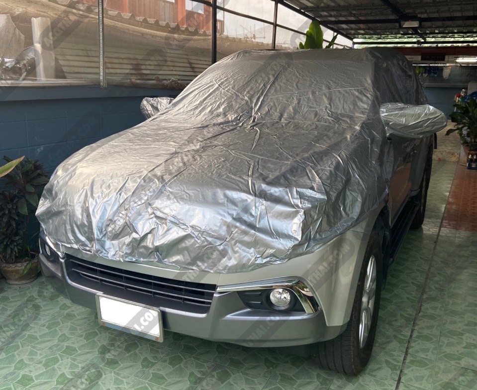 รับสั่งทำผ้าคลุมรถครึ่งคัน คุณภาพดี ราคาถูก พร้อมกระเป๋า คลุมป้องกันแดดและเพื่อลดความร้อนภายในตัวรถ สำหรับรถที่ต้องการคลุมบ่อย ๆ เน้นคลุมง่าย สะดวก และรวดเร็ว น้ำหนักเบา ทำจาก ผ้าเซนโซร่อน (SENSORON) ซี่ง ผลิตจากเส้นใย NYLON เกรด A คุณภาพสูง ทักทออย่างเหนียวแน่น ทนทานต่อการใช้ ผ่านขบวนการเคลือบสาร (โพลียูลิเทรน) ช่วยสะท้อนความร้อน ,รังสี UV และเคลือบสารซิลเวอร์โค้ท ก่อนที่จะมาเคลือบ PVC ทำให้เนื้อผ้าเป็นมันเงา และหนาทนทาน กันน้ำ100% จำหน่ายทั้งปลีกและส่ง